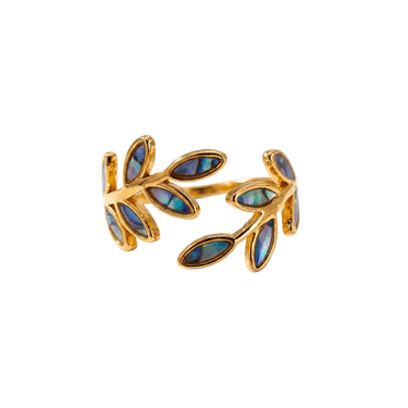 Ispirato ai mitici Campi Elisi — un paradiso di luce e armonia nelle antiche leggende — questo anello evoca un bosco sacro in cui terra e spirito si incontrano. La delicata forma a ramoscello avvolge il dito come un talismano protettivo, mentre gli inserti iridescenti brillano in blu oceanici e verdi celestiali, riflettendo la luce come foglie incantate al crepuscolo.